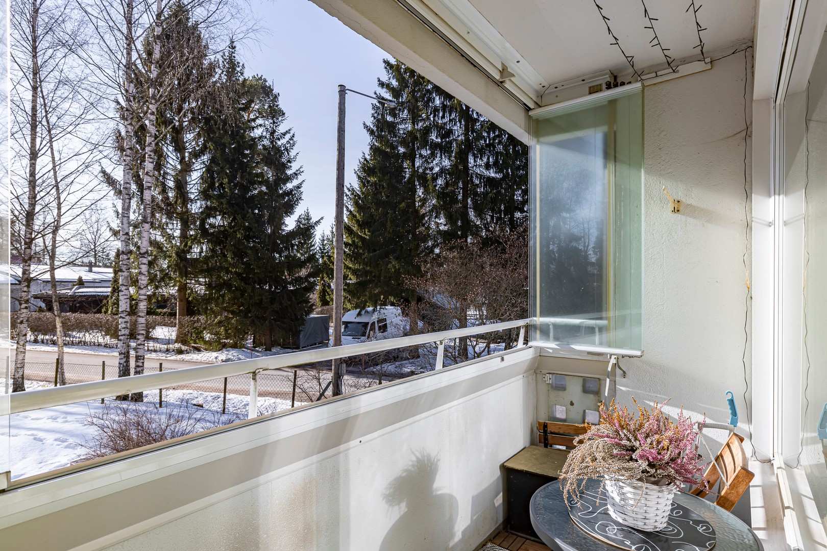 Läpitalon asunto, jossa lisäksi parveke. Vaikka talossa ei ole hissiä on tämä ensimmäinen kerros - ei maantasossa- joten asuntoon on vain yhdet pienet portaat, vain muutama askelma.