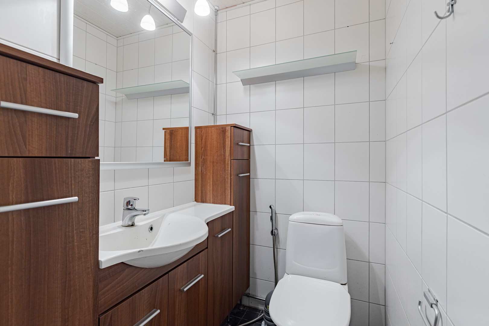 | Kylpyhuone | Kylpyhuone, sekä erillinen wc. Järkevä ratkaisu, koska yhden ollessa suihkussa, voi toinen käytää wc-tilaa. |