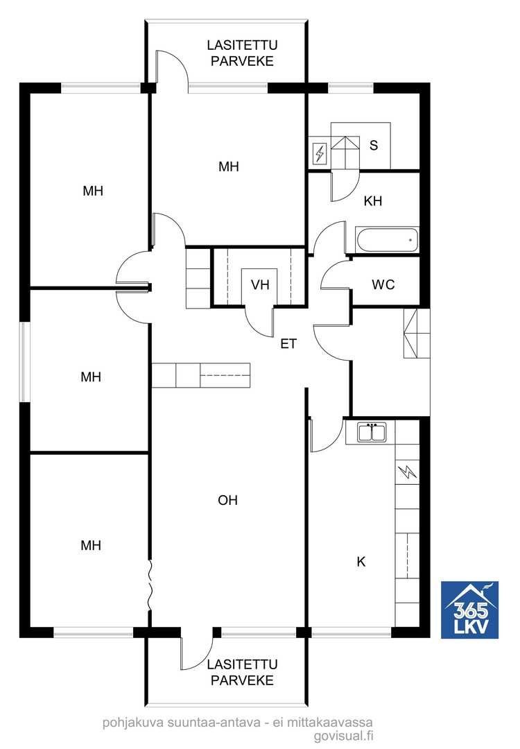 | Huoneistoselitelmä | 5h+k+s+vh+2kpl lasitettu parveke |