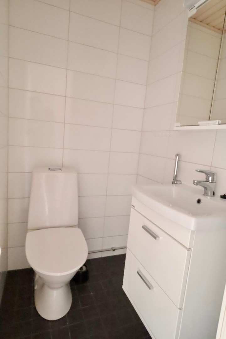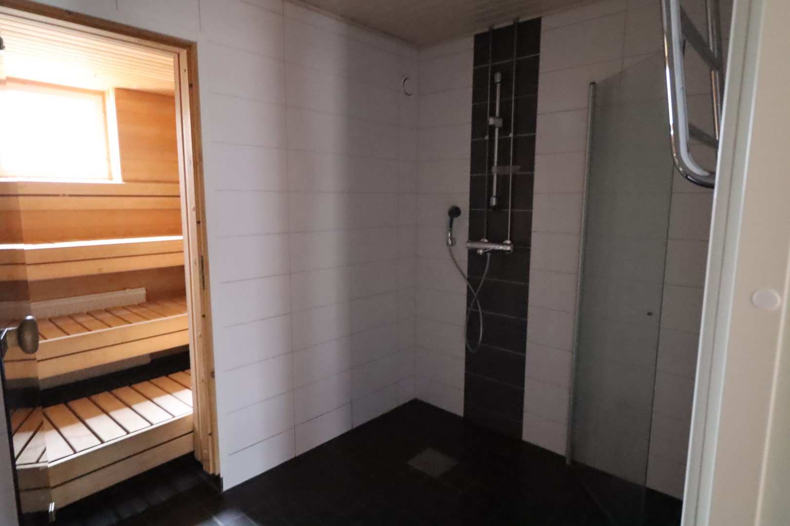 | Kylpyhuone | Seinämateriaali: kaakeli Lattiamateriaali: laatta Varusteet: pesukoneliitäntä, suihku, suihkuseinä Erillinen pesutila saunan yhteydessä. Saneerattu 2019 kokonaisuudessaan (käyttövesiputkiremontin yhteydessä) |