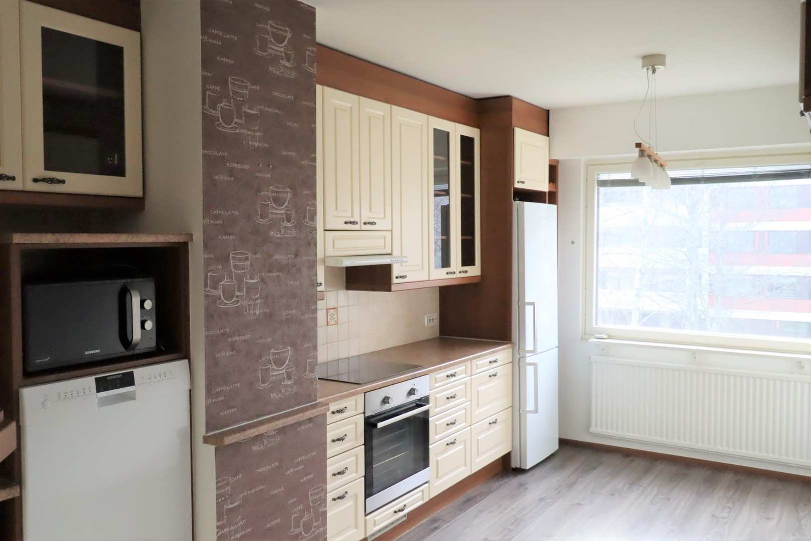 | Keittiön varustus | Keittiö on uusittu Puustellin keittiöksi 2012, lattiat uusittu 2014 ja kaikki kodinkoneet uusittu: Jääkaappi/pakastin 2018, Tiskikone 2018, Liesi 2019 (induktio/kiertoilma). Liesi/uuni: Induktioliesi |