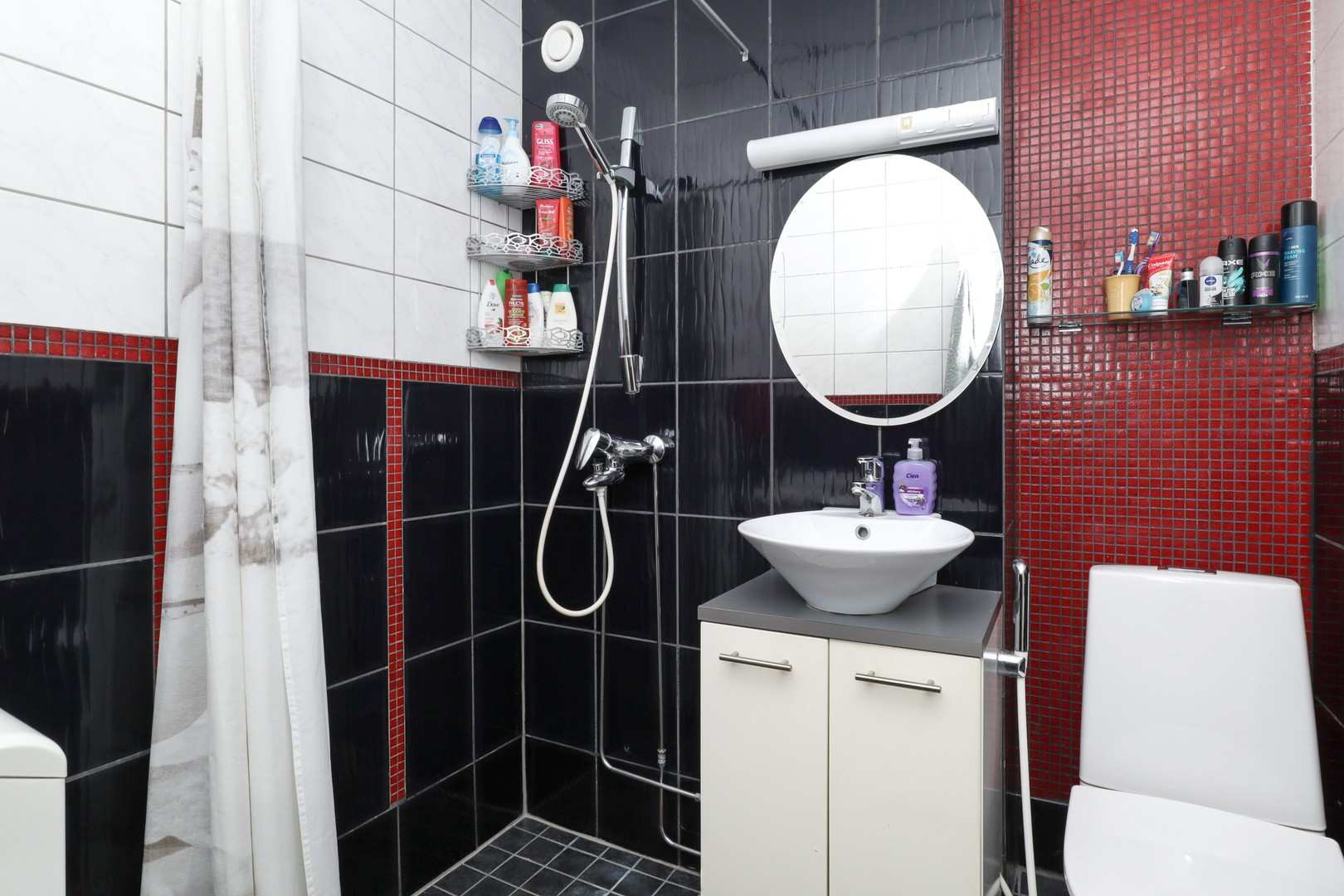 | Kylpyhuoneen materiaalit | Lattia: Laatta Seinät: Kaakeli |