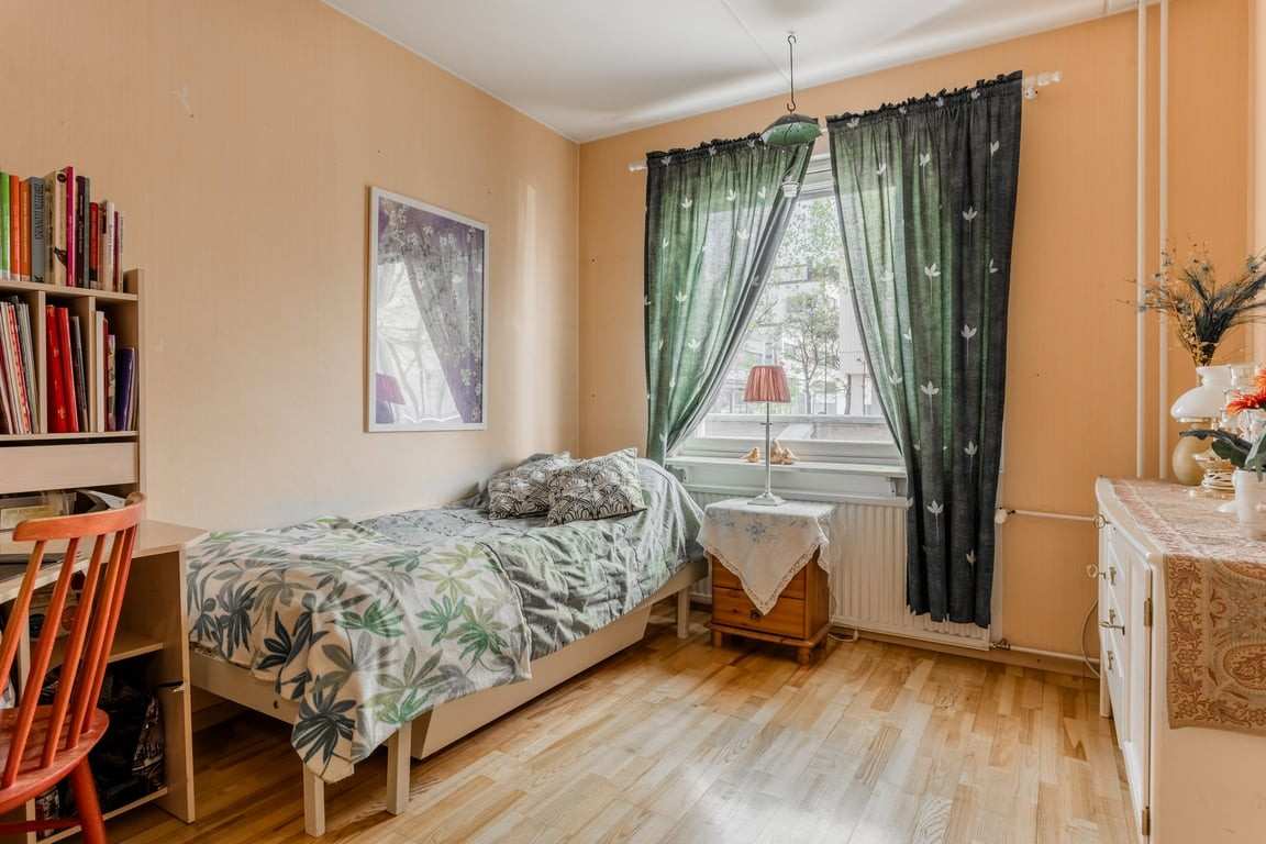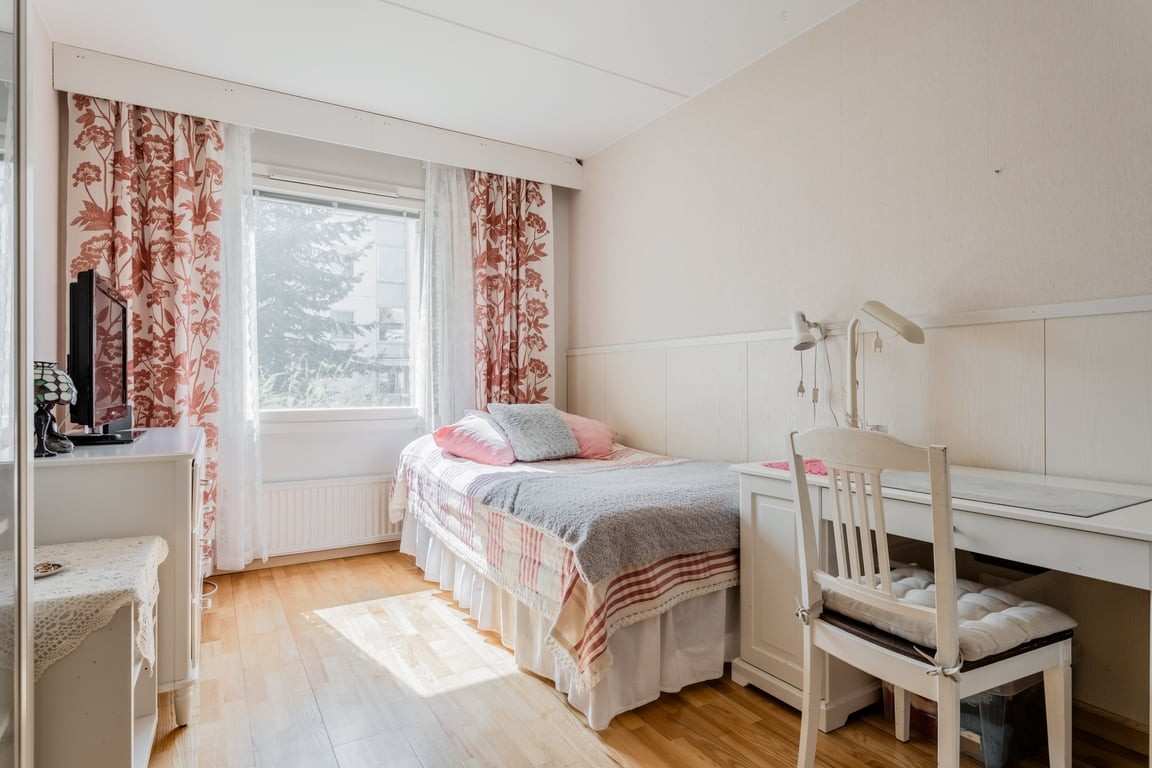 | Makuuhuone | Lattiat on lautaparkettia koko asunnossa. |
