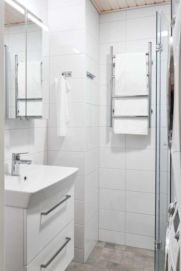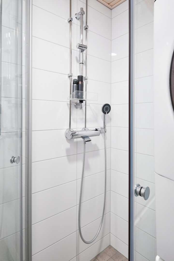| Kylpyhuoneen varusteet | Suihku, suihkuseinä ja pesukoneliitäntä |
