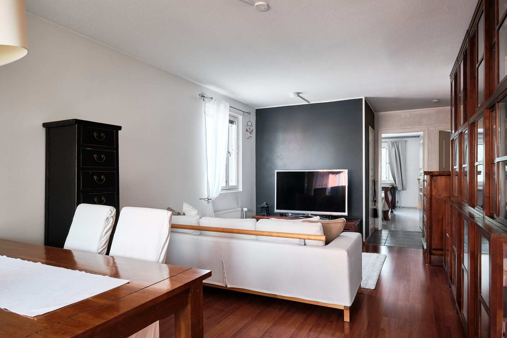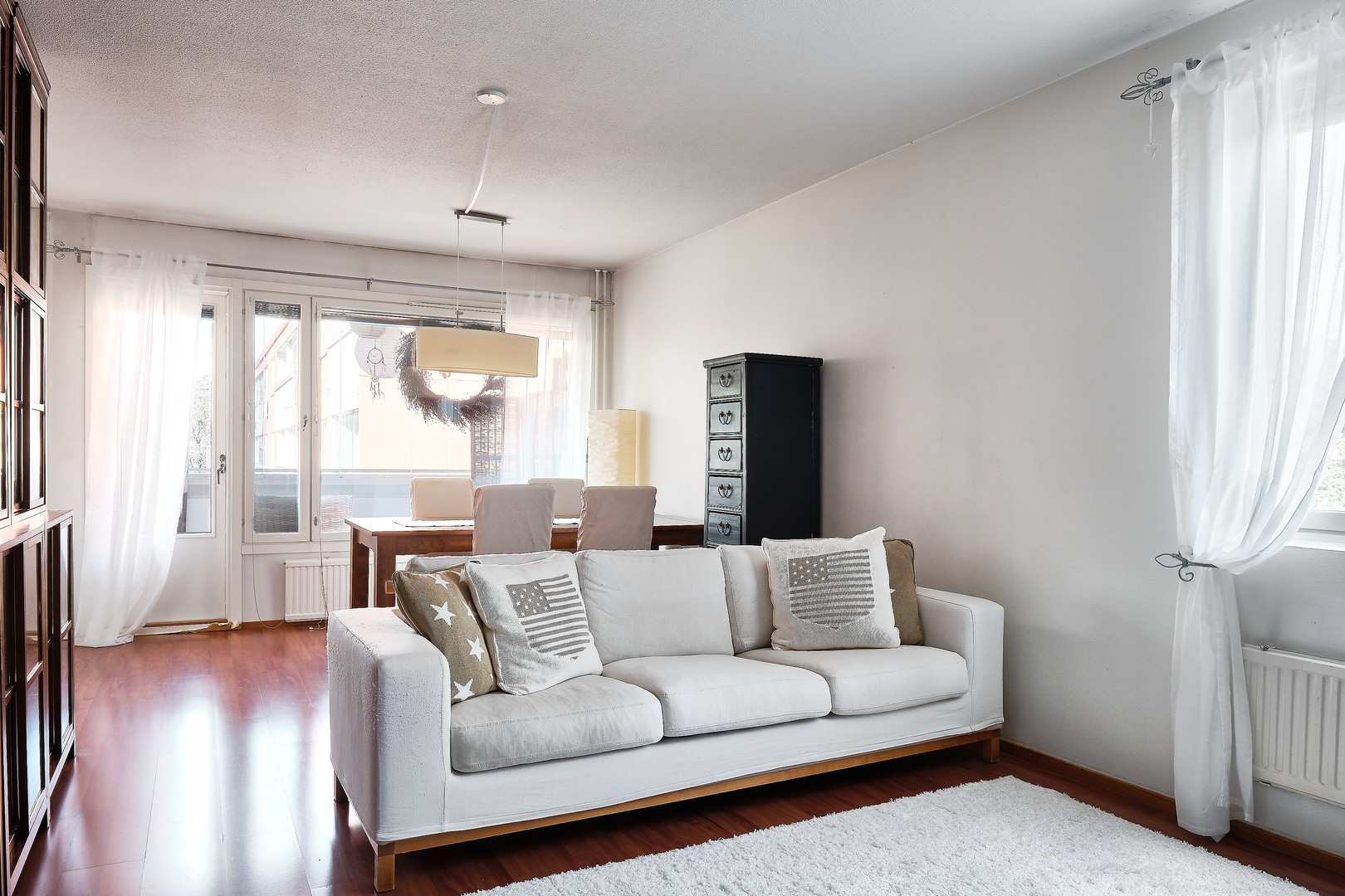 | Olohuoneen materiaalit | Lattia: Laminaatti |