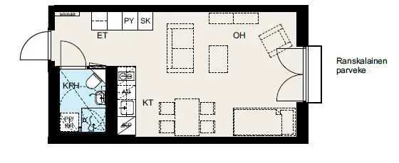 + tilava yksiö, 31,5 m2