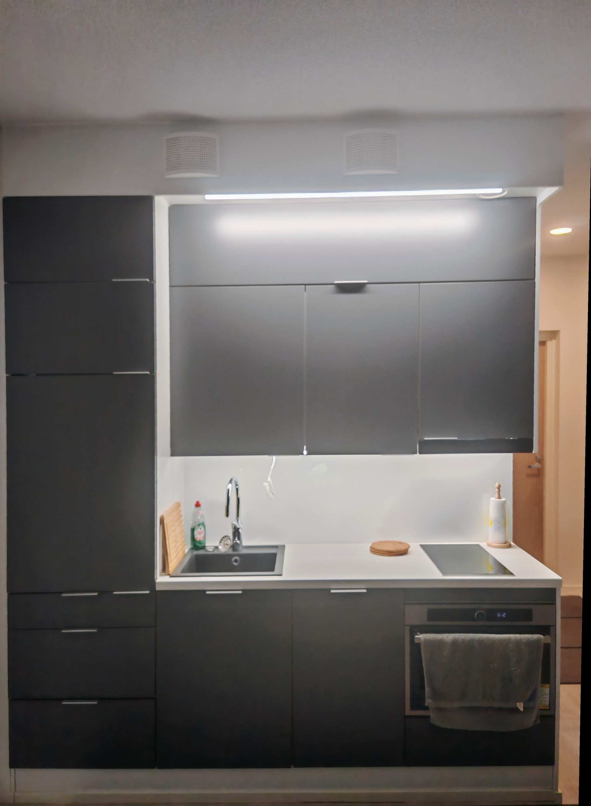 | Keittiön varusteet | Jääkaappipakastin, liesi, liesituuletin, uuni ja astianpesukone |