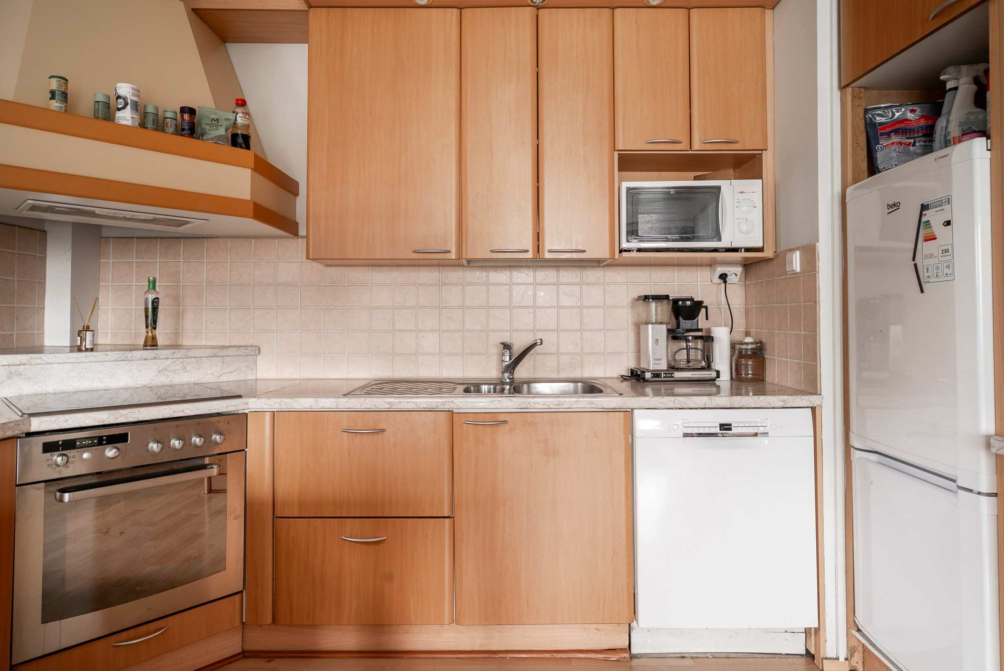 | Keittiön varusteet | Uuni, liesi, jääkaappipakastin, liesituuletin ja astianpesukone |